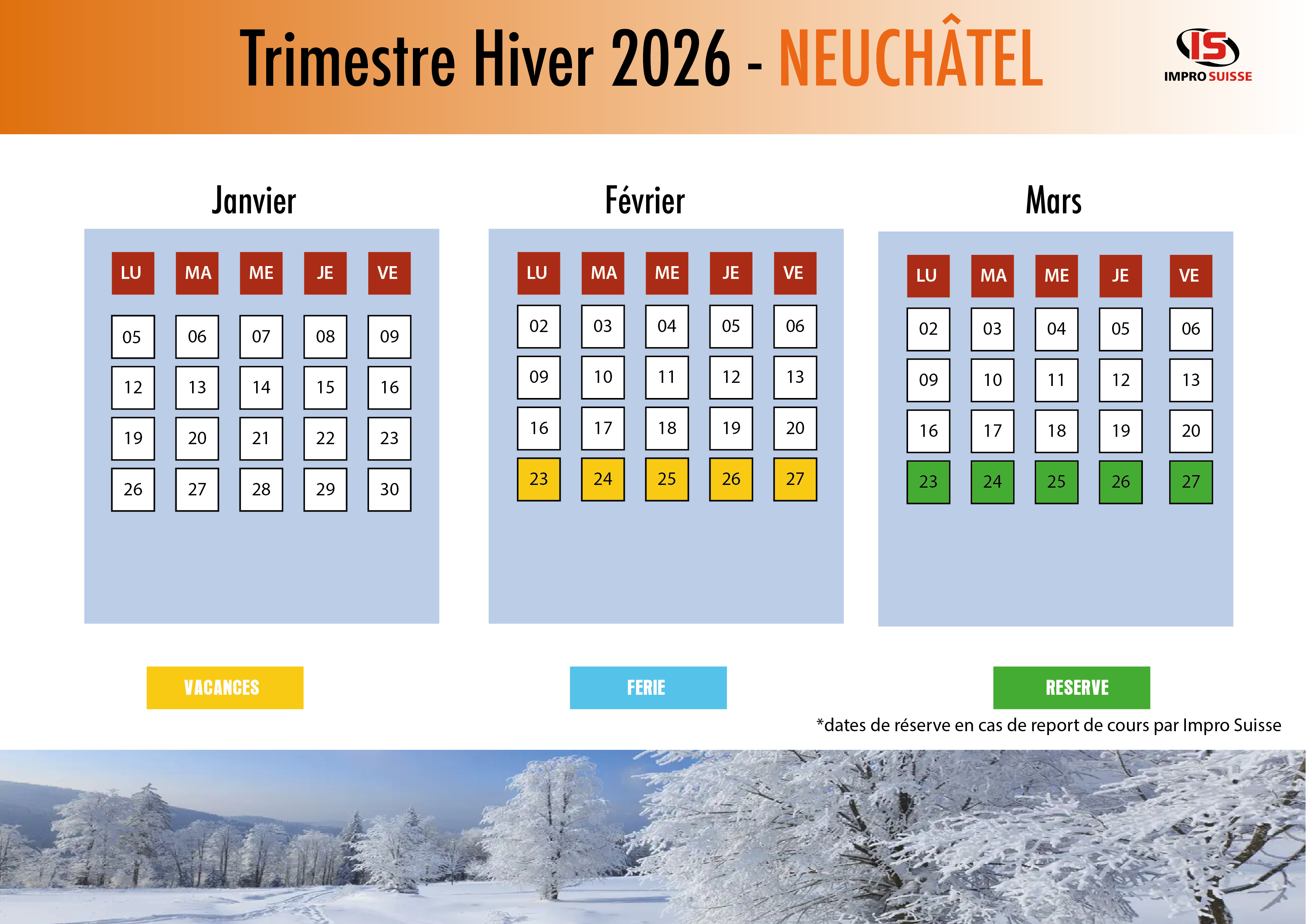 NEUCHATELPlanning Trimestriel